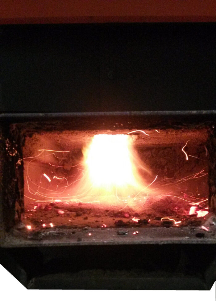 На фото и видео видно как происходит сгорание газа, выделенного из твердого топлива (дрова, торф, брикет, и др.), при колоссальных температурах, таких, что даже камера не может снимать при открытой дверце камеры сгорания.